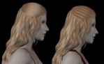 The first hair is ready and just needs a preview pic or two before it gets uploaded (which might take a while, but I’ll have it up by the end of the week). Meanwhile, here’s another WIP.